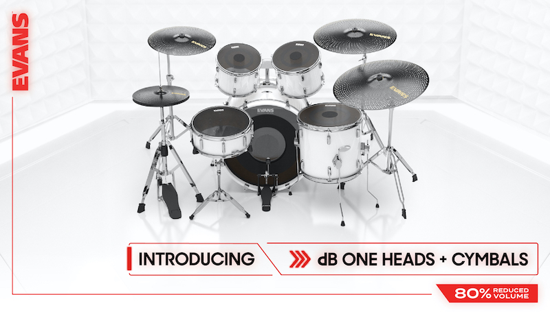FARMINGDALE, New York — EVANS Drumheads, the most technologically advanced drumheads on earth, is introducing a revolutionary new suite of products, dB reduced volume drumheads and cymbals. The dB product suite includes dB Zero, a rebrand of the popular SoundOff mesh drumheads, and the introduction of dB One Drumheads and Cymbals.
