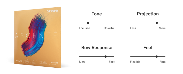 Humidity Resistant with a warmer sound, Ascenté strings introduce players to unique tonal colors offered by synthetic core strings.